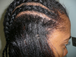 First I started off by installing my cornrows. I am getting better at these and my tension and parting is greatly improved, but it takes me sooooooooooo looooooooooong to put these in. My mum would have taken 20mins max to do this, it took me close to an hour and half!!!! An hour and a half for 14 damn cornrows, well 15 if you count the horizontal braid at the nape.